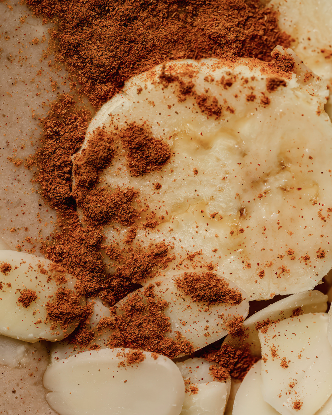 - Add all ingredients to a blender and blend on high for 1 minute until thick and creamy. Pour into a glass and finish with a sprinkle of cinnamon and flaked almonds.